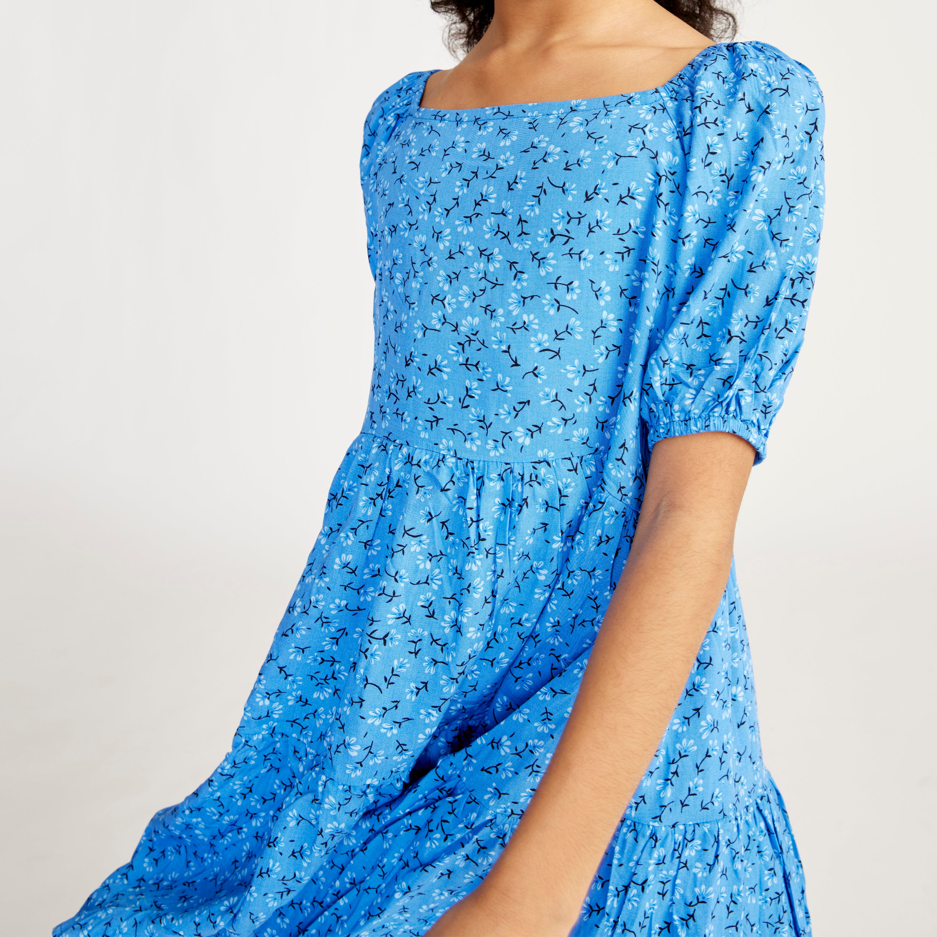 Puff Sleeve Floral Pattern Baby Doll Tiered Dress