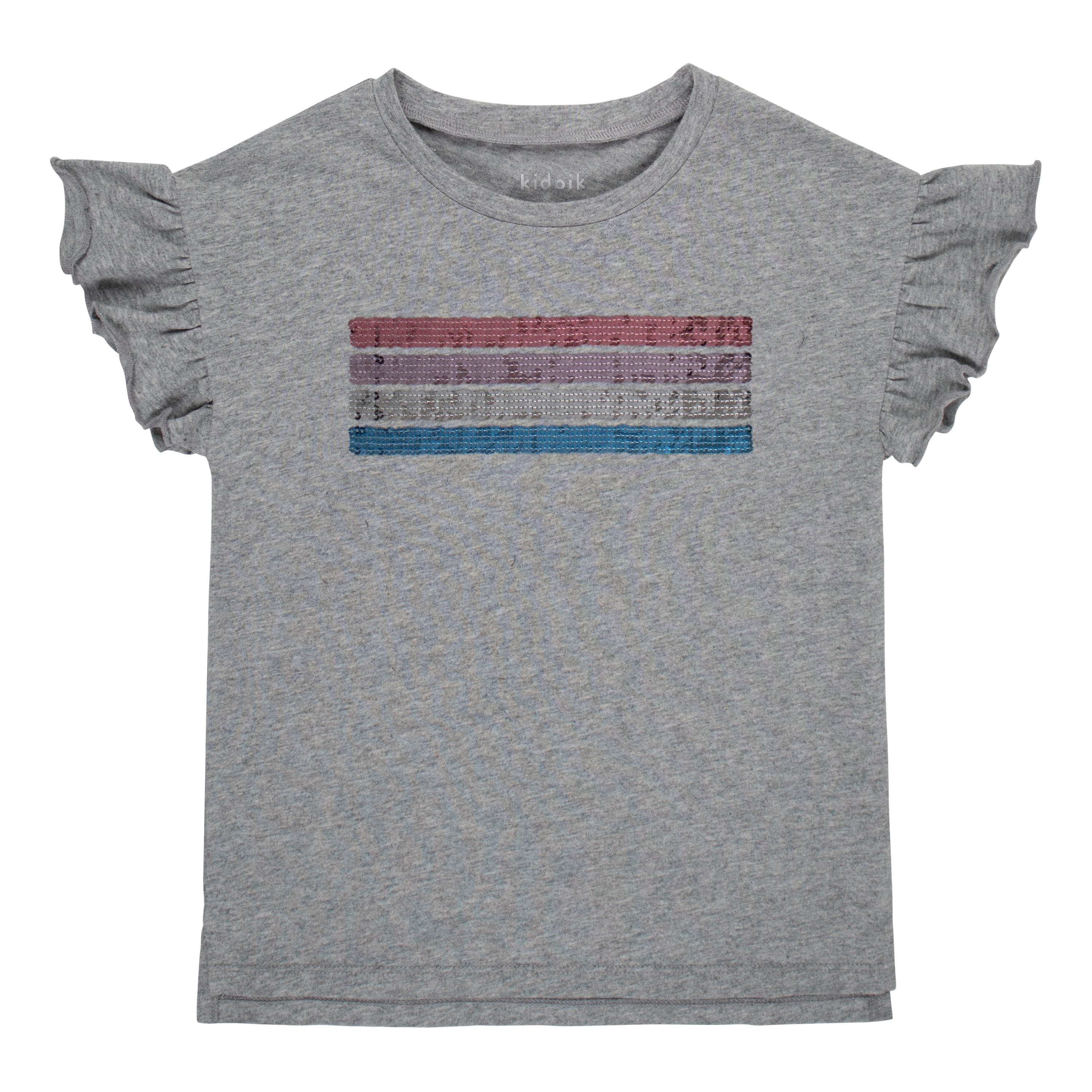 Sequin Stripe Ruffle Sleeve Tee