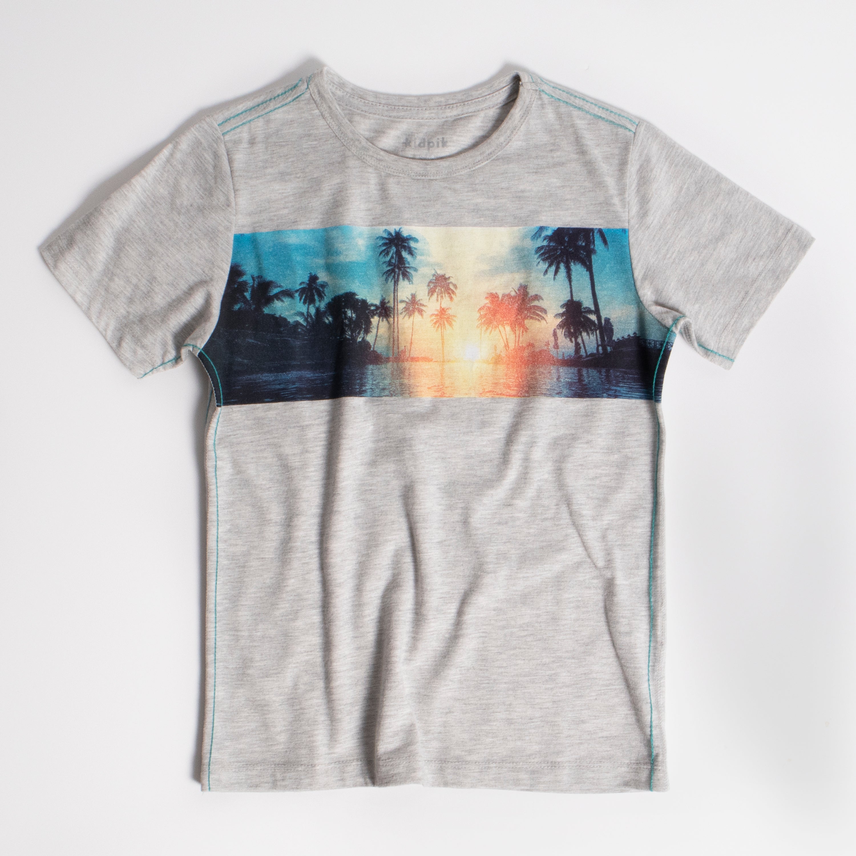 • Front Chest Screen Print Tropical Sunset Graphic