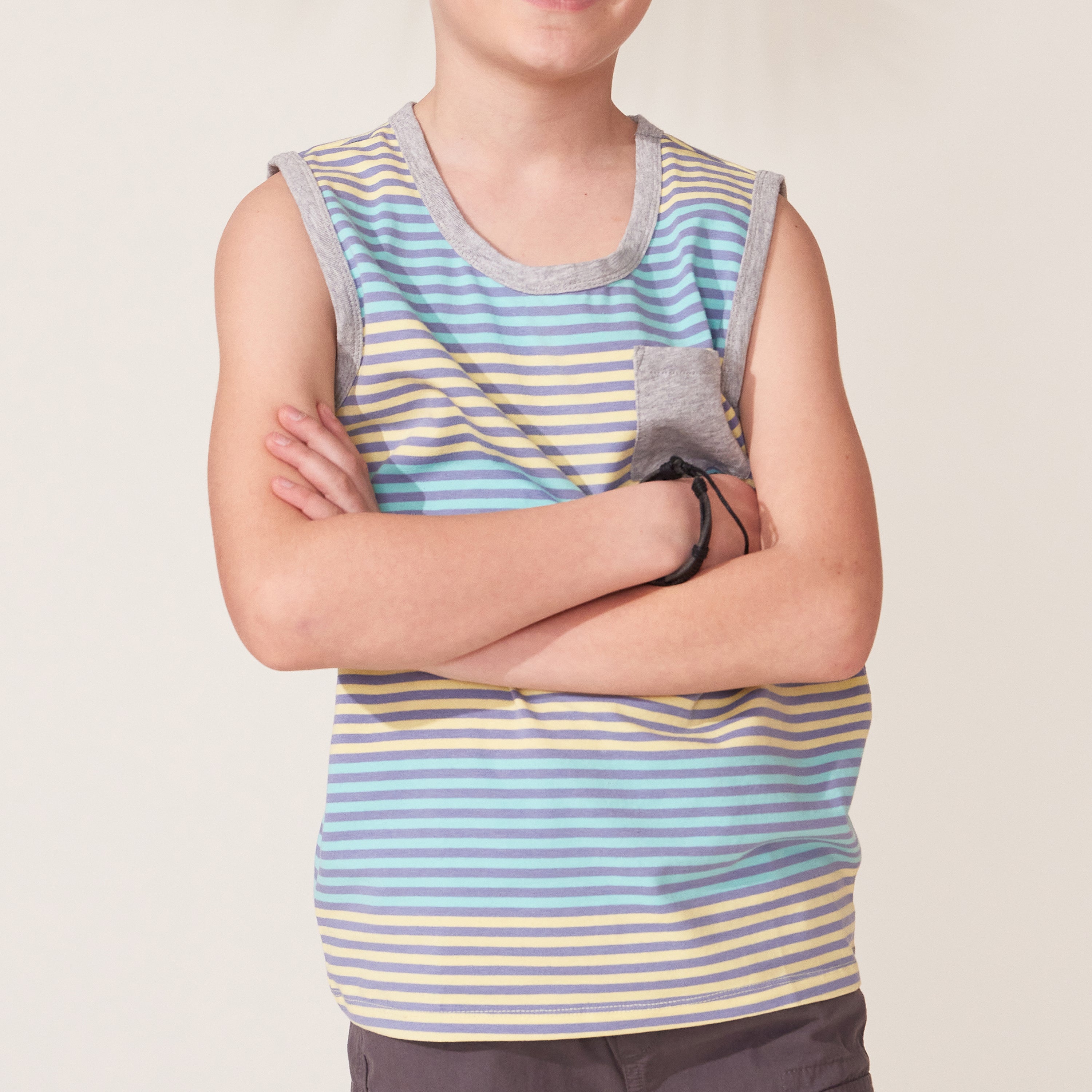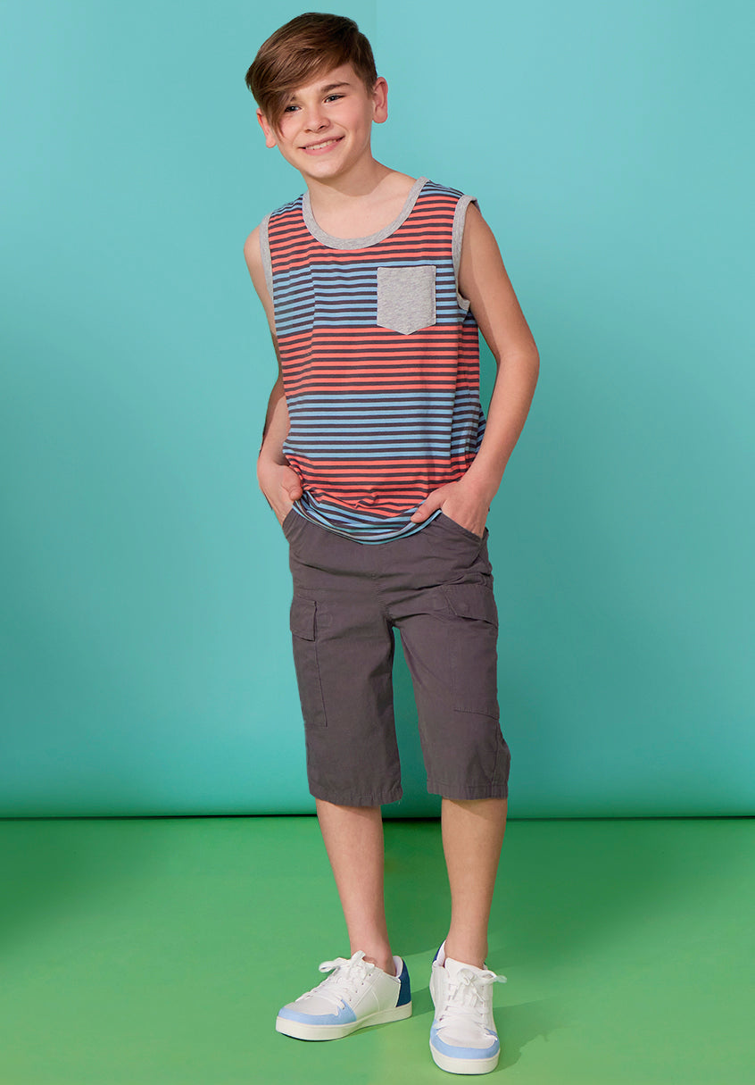 Sleeveless Stripe Pocket Tank Top